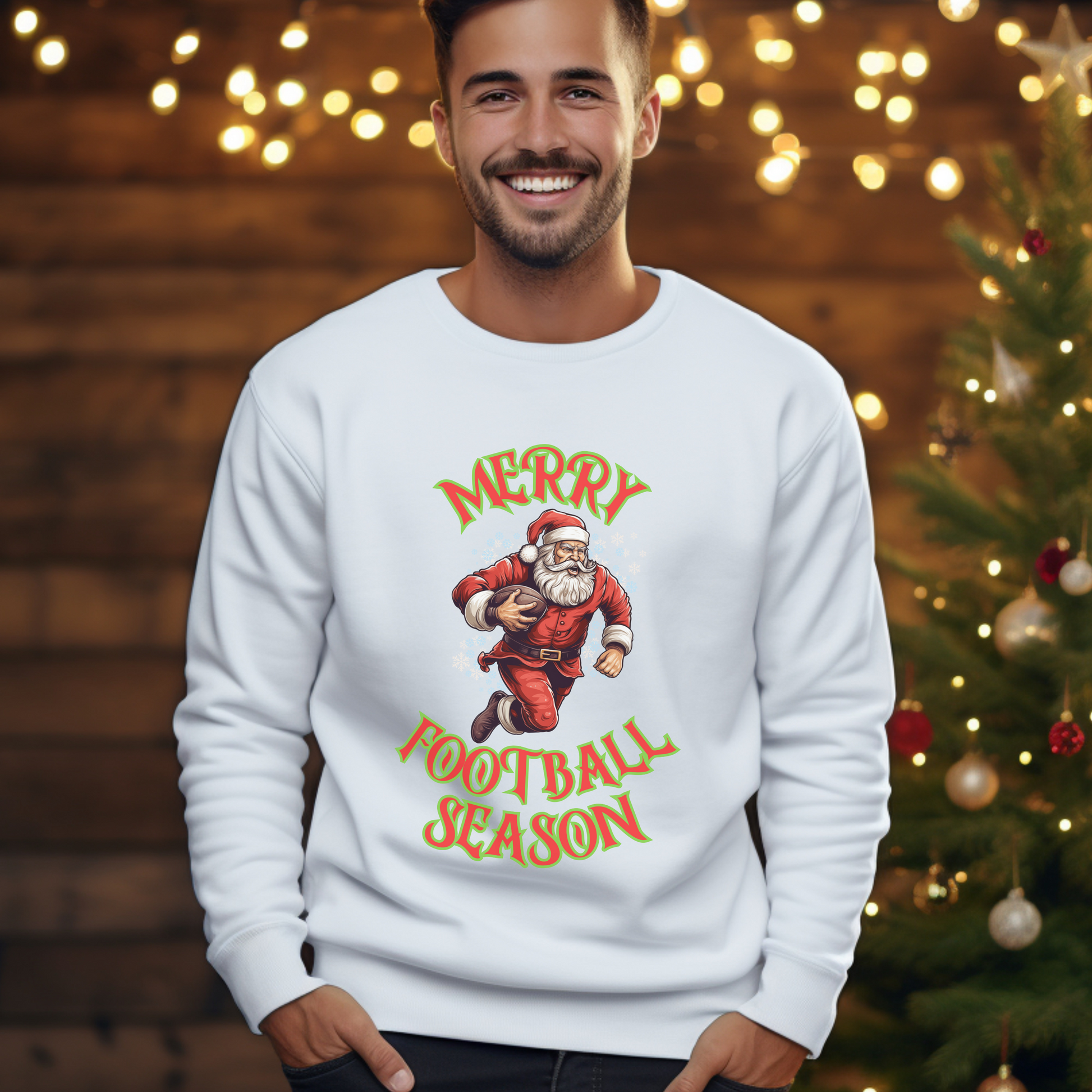 Introducing our festive and fun "Santa's Touchdown" Christmas sweater! Get ready to score some serious style points this holiday season as Santa takes a break from the sleigh to hit the football field. Crafted with comfort and Christmas cheer in mind, this cozy sweater features a playful design of Santa showcasing his athletic side, complete with a football in hand. The vibrant colors and intricate detailing make it the perfect choice for your holiday gatherings, office parties, or even a casual game day celebration. Spread the joy and laughter with this unique and whimsical Christmas sweater that effortlessly blends the magic of the season with a dash of sportsmanship. Embrace the spirit of the holidays with "Santa's Touchdown" – where festive fashion meets playful touchdown moments!