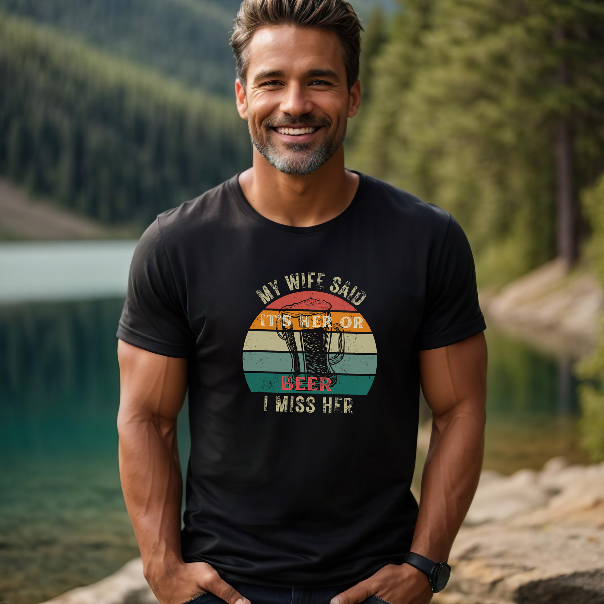 My Wife Said It's Her or Beer I Miss Her - Retro T-shirt